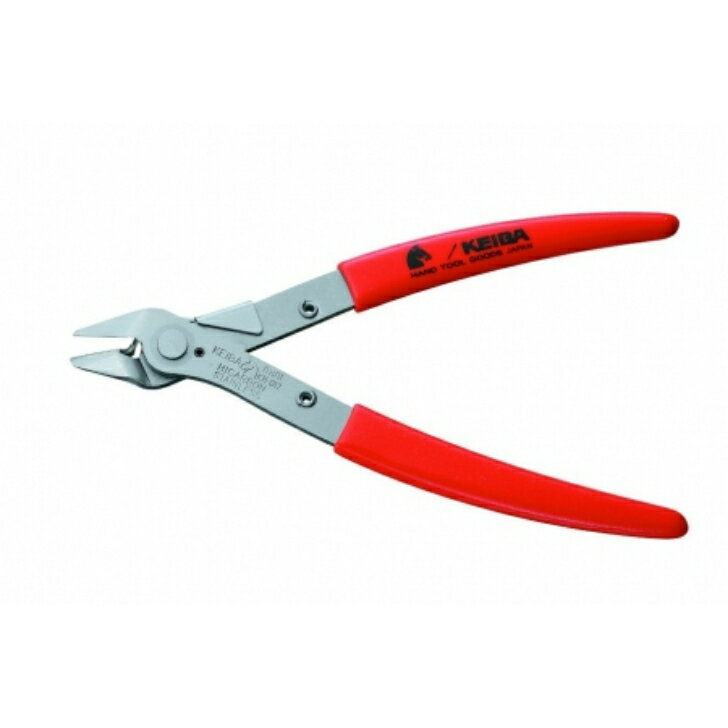 【特長】■ケイバ・ミニの軽さはそのままに、より強度を増したハイ・カーボン鋼製です。【用途】■軟細線材やピアノ線等を切る用途に。【仕様】■全長(mm):128■刃表面形状:フラッシュ刃■切断能力(mm)中硬線:ー■切断能力(mm)銅線:Φ1.6■切断能力(mm)軟鉄線:φ0.9■切断能力(mm)ピアノ線:φ0.3■切断能力(mm)軟銅線:φ1.6■ばね付■リードキャッチャー(飛散防止機能)付【材質・仕上】■炭素工具鋼■グリップ:ポリ塩化ビニール