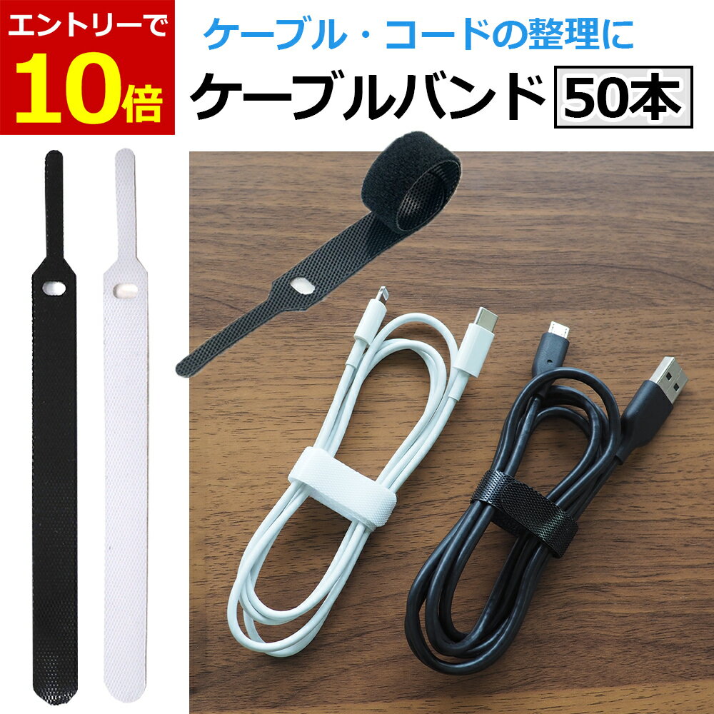【3/5 当店エントリーで最大P10倍&100円クーポン! 】ケーブルバンド 50本セット ケーブルタイ マジックテープ 薄型 ケーブルクリップ ブラック ホワイト 面ファスナー USBケーブル まとめる コードクリップ コードタイ コードバンド