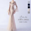 【全品最大30%OFF】マーメイドドレス スパンコール キラキラドレス ロングドレス レディース 長袖 フレア袖 Vネック ワンピース イブニングドレス パーティードレス キャバドレス マキシ丈 お姫様ドレス キラキラ セクシー 卒業式 司会 お呼ばれドレス 演奏会 きれいめ