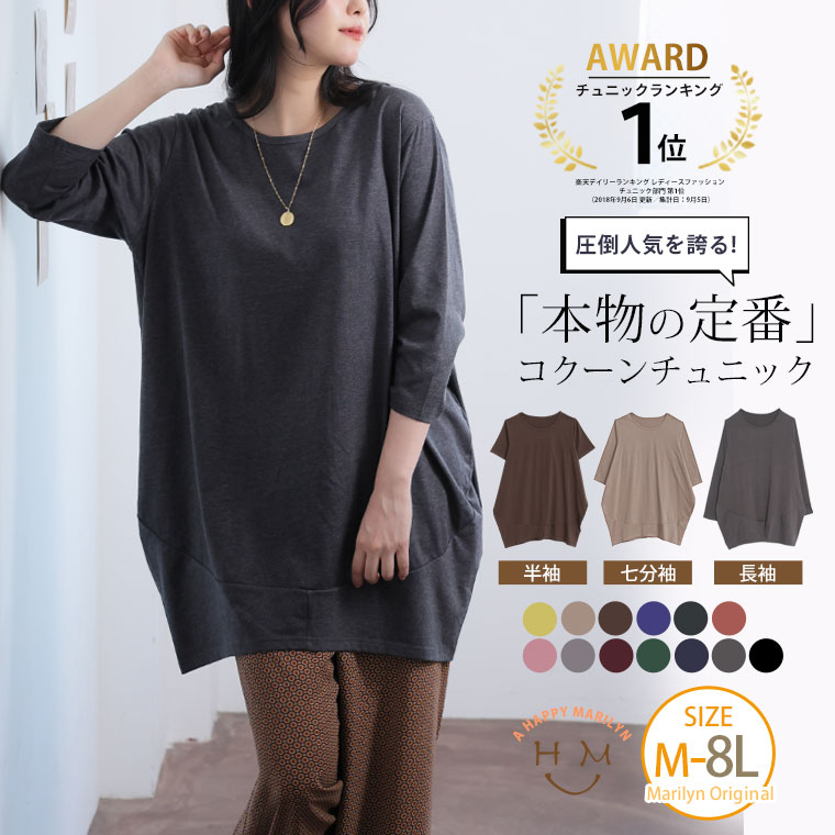 ★リアルタイム★売り上げ実況中! インフォメーション ご 注 意 ■商品は再生産時、多少色に濃淡が出ます。同色商品を再購入頂きます際には、そのことをご了承頂きます様、宜しくお願致します。 ■サイズは実寸で表記しております。パンツ、ボトムの場合ウエストは実際の商品のウエスト寸法を記載しており、商品によって股上寸法が違いますので、お手持ちの商品と比較してサイズを確認お願い致します。 ■画像はお使いのパソコンやモニターにより色が変わることがあります。ご了承下さいませ。また、屋外での撮影の場合、多少実際のカラーと異なる場合がございます。 ■本製品は生産過程におきまして、生地を織る際の糸の継ぎ目や多少のほつれが生じることがありまが、品質上は問題ありません。 また、生地の織りに他繊維が混紡している場合もございます。 ■洗濯につきましては、お色物は色落ちの可能性がございますので単品洗いでお願い致します。インポートものの為、裏側等見えない部分に若干縫製の粗い部分がある場合もございますが、着用には全く差し支えございません。 同じお色でも染めの関係で、若干お色が異なってくる場合がございます。予めご了承くださいませ。 ■海外縫製商品の場合、サイズタグの表記違いが有る場合がございます。その場合極たまにペン等で手書き修正して有る場合がございますが、商品自体には、問題はございませんので何卒ご了承下さいませ。 ■送料無料商品の配送について 送料無料商品のお届けにつきましては、当店指定の配送方法にて発送の手配をさせて頂きます。 ご指定頂いておりません配送方法にて商品のお届けがされる場合もございますので、 あらかじめご了承下さいませ。 メール便について ■商品名に【メール便可1】と記載のある商品は、基本的に1点までメール便対応が可能となります。 ※その他【メール便可2】、【メール便可3】等の記載がある場合は同数字の商品数までメール便対応可能です。 【メール便可1】の商品を、2点以上ご注文を頂きました際は、宅配便へ変更のうえ配送を手配させて頂きます。また、お買い物かごを分けてご注文頂きました際にも、発送日前日5時までの注文につきましては、システム上、自動的に「同梱」がかかるようになっております。 同梱をせず、複数個口でのメール便発送をご希望の際は、備考欄へ【同梱不可】とご記載頂ければ、メール便での個別発送をさせて頂きます。何卒よろしくお願い致します。 楽天国際配送対象商品(海外配送) 詳細はこちらです 商品名 新色追加!! 半袖・七分袖・長袖 コクーン シルエット チュニック サイズ Mサイズ Lサイズ LLサイズ 3Lサイズ 4Lサイズ 5Lサイズ 6Lサイズ 9号サイズ 11号サイズ 13号サイズ 15号サイズ 17号サイズ 19号サイズ 21号サイズ 年代 10代 20代 30代 40代 50代 60代以上。 丈 半袖 七分袖 長袖 取扱い商品 春 夏 秋 冬 トップス チュニック ワンピース ワンピ ハッピーマリリン マリリン a happy marilyn あはっぴーまりりん ハピマリ 大きいサイズマリリン 大きいサイズ おおきいさいず おおきなサイズ 大きめ プラスサイズ ぽっちゃり ぽっちゃり服 ラージサイズ ビッグサイズ オーバーサイズ ゆったりサイズ LLサイズ 3Lサイズ 4Lサイズ 5Lサイズ 6Lサイズ 7Lサイズ 8Lサイズ 9Lサイズ 10Lサイズ XL XXL XXXL 2XL 3XL 4XL 11号 13号 15号 17号 19号 低身長 小柄 高身長 大柄 背が高い 背が低い レディース レディースファッション 婦人服 婦人用 女性用 女性服 ladies fashion 20代 30代 40代 50代 60代 アラサー アラフォー アラカン オトナ 大人 大人女子 ママ ママファッション エイジレス ノンエイジ 楽天スーパーセール super sale 楽天お買い物マラソン お買い物マラソン オフィス オフィスカジュアル 通勤 通学 デイリー 会社 職場 仕事着 仕事服 公園 お買い物 ショッピング デート おでかけ お出掛け リラックス 旅行 おしゃれ お洒落 オシャレ 可愛い かわいい カワイイ cawaii 大人可愛い カッコイイ 格好いい カジュアル フェミニン ガーリー 体型カバー スタイルアップ 着痩せ 着やせ 細見え すっきり見え 旬 トレンド 通販 オンラインストア ネットショッピング 着回し力 コーディネイト 新作 NEW 新登場 春 春物 春服 spring 夏 夏物 夏服 summer 秋 秋服 秋物 autumn 冬 冬服 冬物 winter オールシーズン 通年 【七分袖:437038/長袖:437039/No.500/61グラスグリーン、62ダークブルー、41ダークパープル、44ピンクベージュ、21モカ、31バーガンディ、54テラコッタ、64カーキ、22ダークブラウン、14チャコールグレー、74ネイビー、11ブラック】/【8/26】【長袖:430893-1/七分袖:430893-2/No.500/チェリーピンク、ボルドー、杢グレー、杢チャコール、ダークチャコール、パープル、カーキ、ライトカーキ、ネイビー、ブラック】/【11/25】【10040062】【430893-3/ピンク、ミントグリーン、アイボリー】/【2/3】【長袖:430893B-1/七分袖:430893B-2/半袖:430893B-3】【花柄/オレンジ系、イエローグリーン系、ブラック系、ドット柄/ブラック】/【5/20