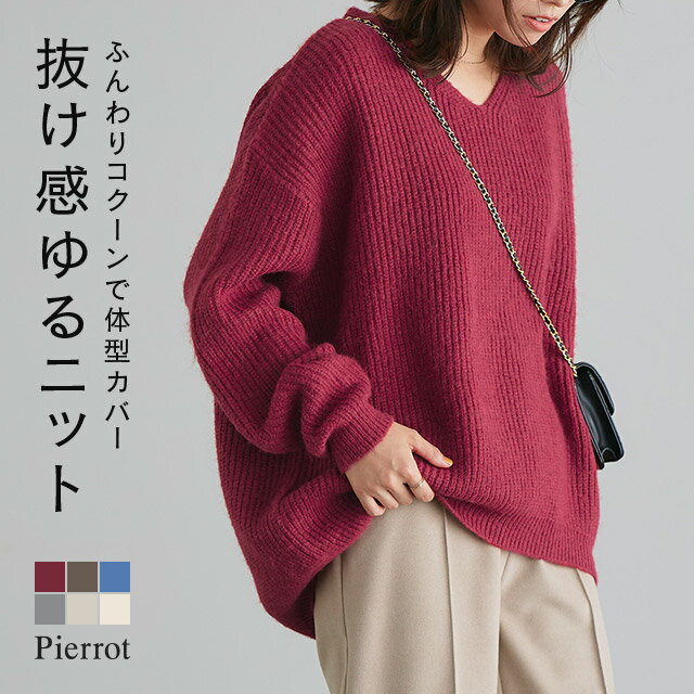 全品20%OFFクーポン!≪限定特価 送料無料≫≪当日発送≫ ニット コクーンシルエットニット ☆ ニット コクーンシルエット Vネック 長袖 体型カバー ふんわり ざっくり ピエロ