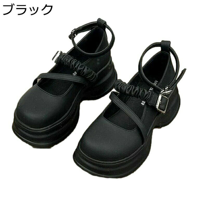 ロリータ 靴 レディース ゴスロリ ゴシック 可愛い メイド 厚底靴 クロスベルト パンプス リボン付き 森ガール お嬢様 美脚 コスプレ靴 洋服靴 お茶会 変装 メイドシューズ 歩きやすい ラウンドトゥ