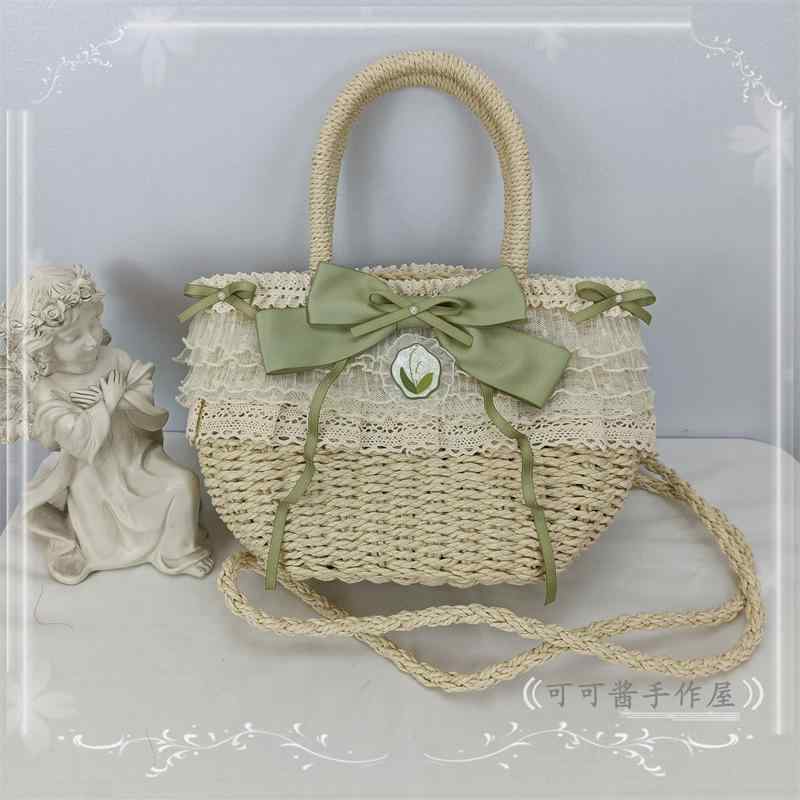 バッグ かわいい ハンドバッグ スズラン ショルダーバッグ レース 和草 カラー 牧歌 風大容量 ピクニック バスケット レディースバッグ