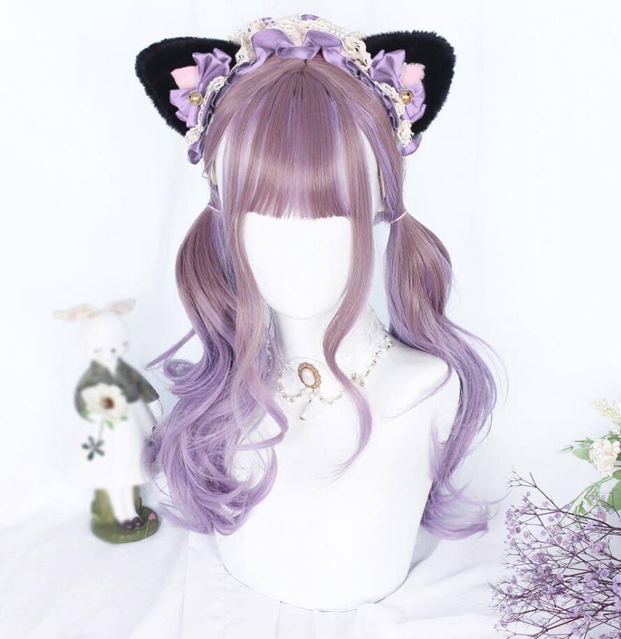 可愛い巻き髪 フルウィッグ ウェーブカツラ パープルグラデーション ロン毛 ロングウィッグ カラーウィッグ 可愛いウィッグ 小顔効果 原宿系 ロングヘア ぱっつん 重め前髪 ロリータ コスプレ イベント パーティー 学園祭 仮装 女装 変装 ハロウィンコスチューム