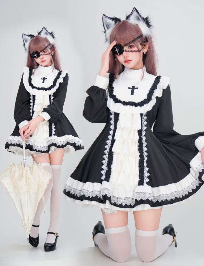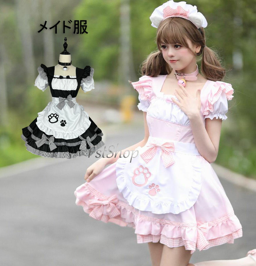 メイド服 ロリータ 衣装 可愛い コスチューム コスプレ ハロウィン ロリータ 大きいサイズ レディースワンピース スカート フリフリ クリスマスパーティー ミニ丈 セット 黒 ピンク ハロウィンコスチューム 変装変装 メイド喫茶 クリスマスパーティー