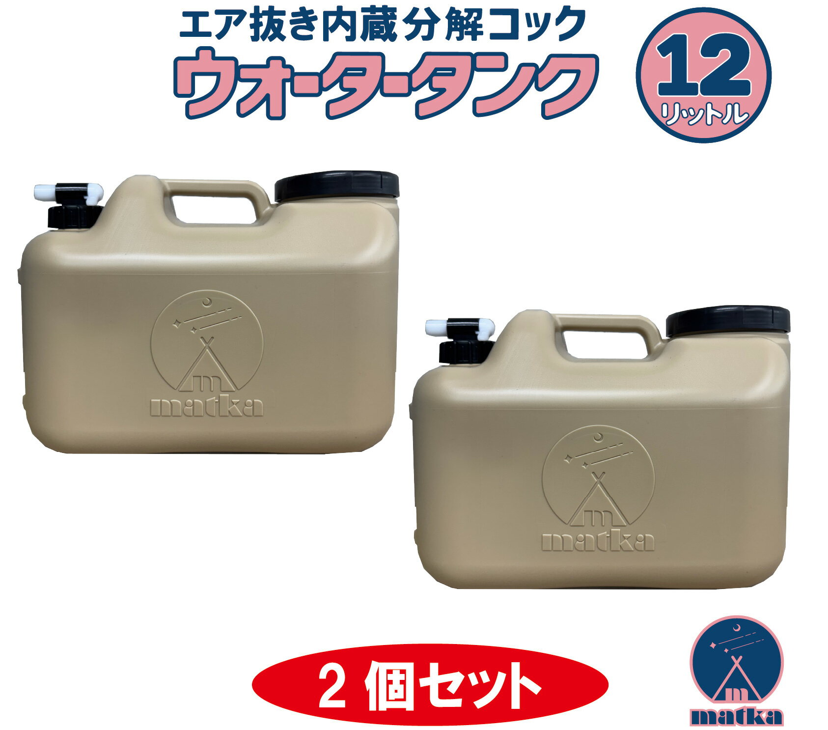 水タンク 12L 2個セット ベージュ色 水缶 ウォータータンク 日本製 ポリ缶 ポリ容器 アウトドア キャンプ 防災時 災害時 貯水 エア抜き搭載式 分解コック付き オシャレ 日本製 matka (マトカ)
