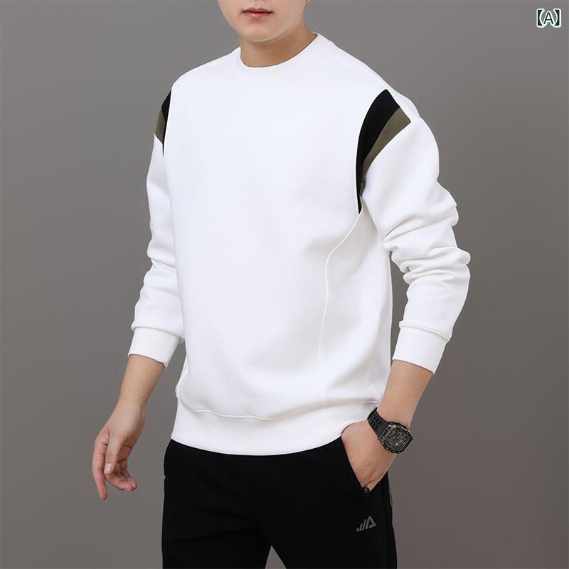 春秋 メンズスウェットシャツ エアレイヤー カジュアルスポーツトップス スペースコットンスウェットシャツ コットンラウンドネック パッチワークプルオーバースウェットシャツ