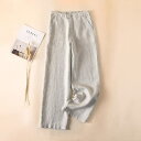 リネンワイドレッグレディースパンツ細いセクション緩いドレープ九綿ストレートパンツ