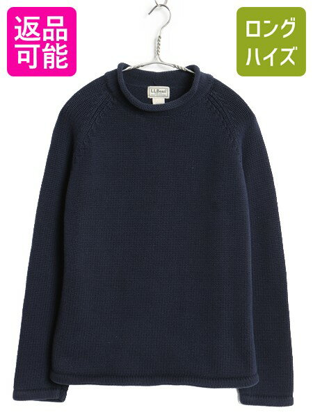 【2/20 20名様限定1000円OFFクーポン】 エルエルビーン ロールネック コットン ニット セーター レディース M / 古着 アウトドア ミドルゲージ リブ編み ハイネック 無地 ネイビー| 中古 LLBEAN LLビーン 長袖ニット 長袖セーター ニットセーター コットンニット カットソー