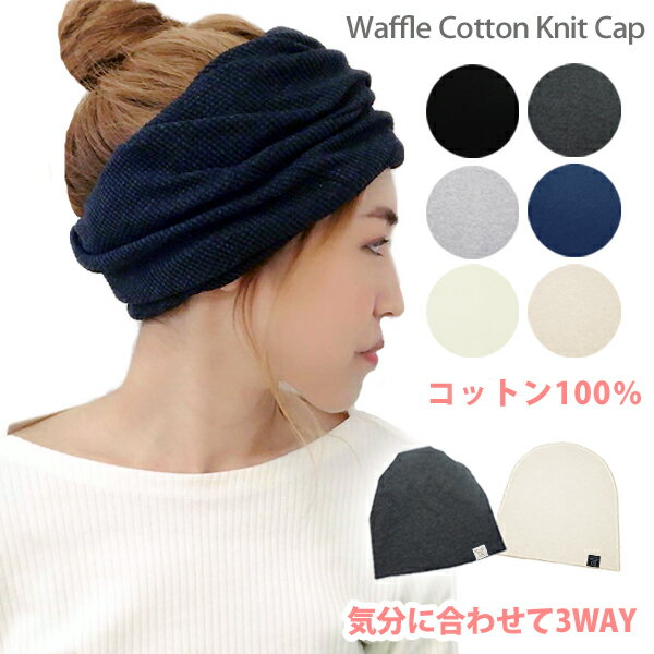 ターバン 幅広 コットン ニット帽 春夏 秋冬 医療用帽子 就寝用 外出用 ナイトキャップ 抗がん剤 レディース メンズ ワッチキャップ 綿100 敏感肌 乾燥肌 おしゃれ ケア帽子 ゴルフ フェイスカバー フェイスマスク ネックウォーマー【ワッフルコットンニットキャップ】
