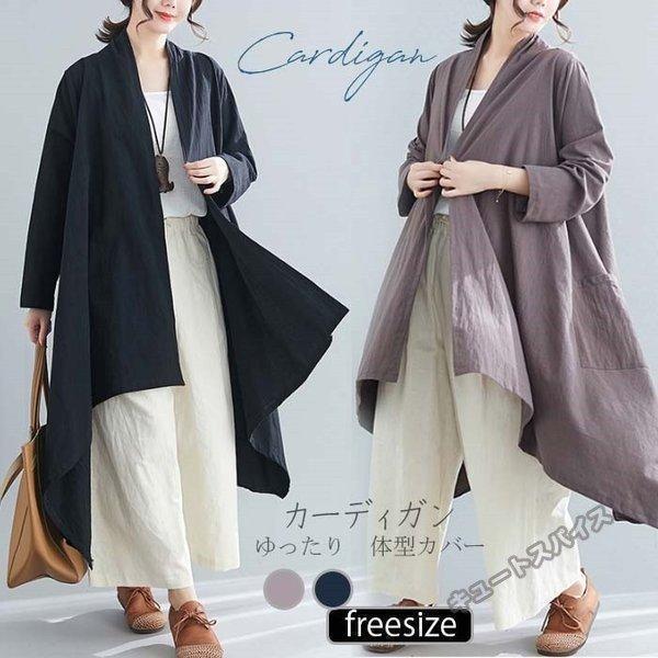 前開 カーデ リネン コットン ロングカーディガン 大きいサイズ 綿麻混 トレンチコート ロング 長袖 秋アウター 40代 レディース