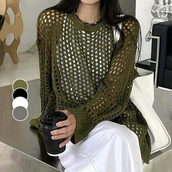 【100枚!5%COUPON+P5倍→実質2279円 11/17まで】レース編み 透け感ニットカーディガン 薄手 ゆったり オーバーサイズ 上品 大人 ハンドメイド風 サマーカーディガン 涼感 オーガニックコットン ロングカーディガン 韓国風春 トップス 長袖ニット 百掛け デザイン