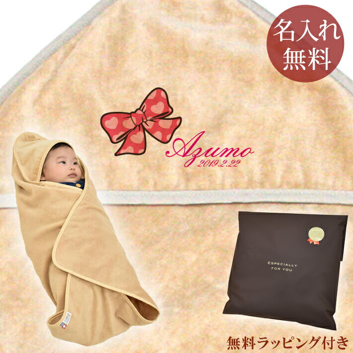 【即納 翌営業日出荷】 出産祝い 名入れ 名前入り おくるみ フード付き 赤ちゃんに優しい 綿100% 日本製 今治タオル ポップデザイン ハートりぼん 女の子 赤ちゃん ベビー 新生児 スワドル アフガン 送料無料 ブランド ココロコ