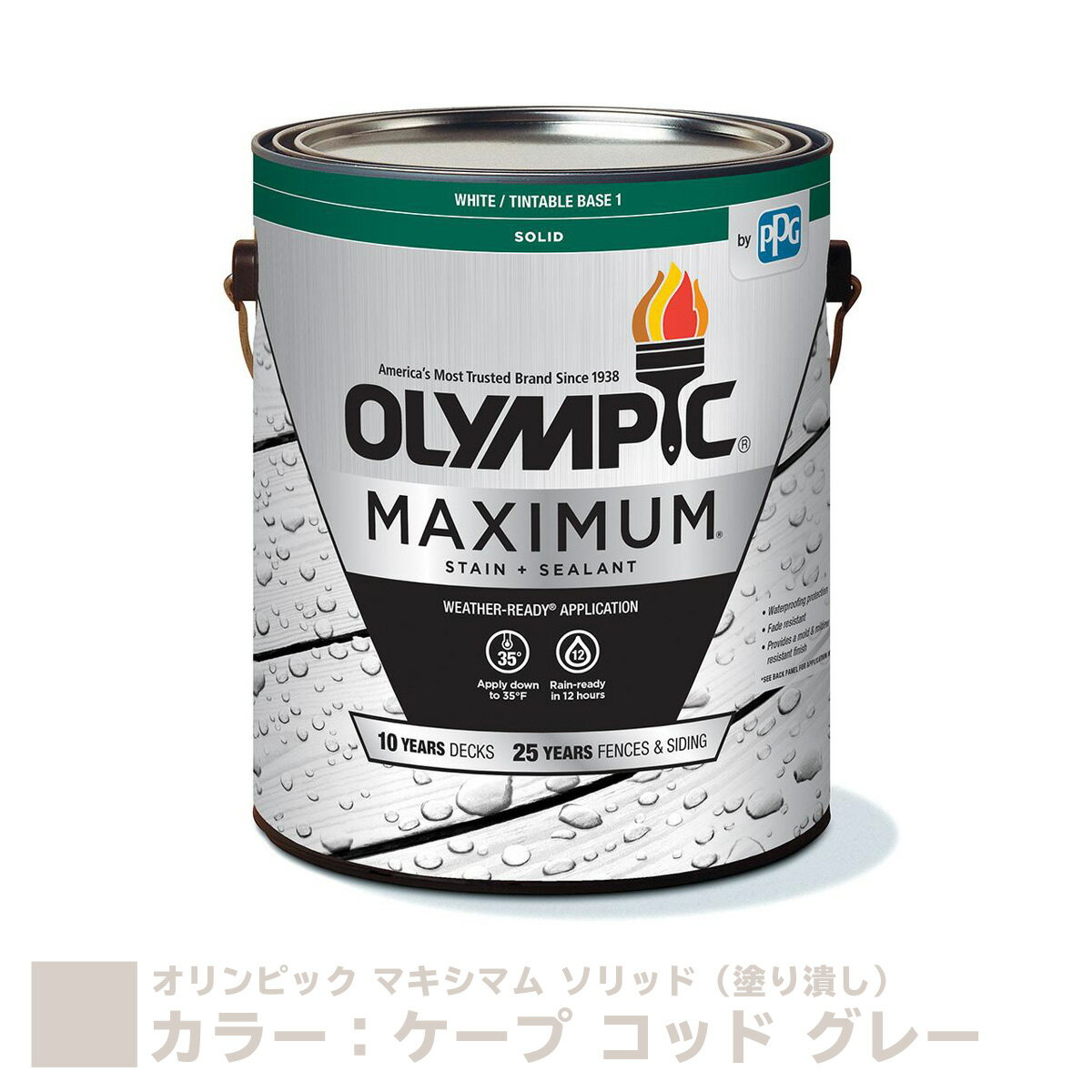 オリンピック マキシマム ソリッド(塗り潰し)カラー:ケープ コッド グレー 容量:3.78L【全112色】 水性 木材用 塗料 屋外用 速乾 フェンス ウッドデッキ リフォーム ラティス 木柵 ドア ベンチ 塗装 DIY 木部 保護 防腐 防水 防カビ PPG ステイン 【送料無料】