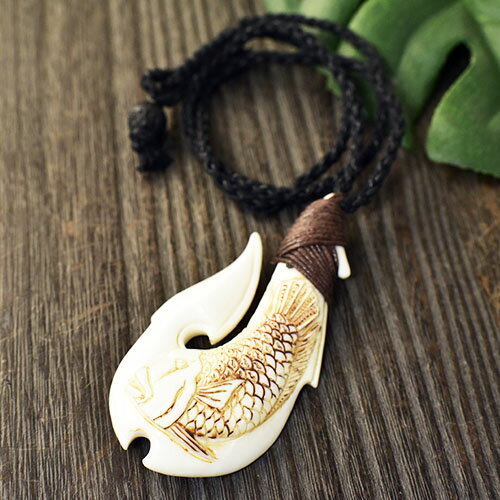マオリ族 ボーン カービング(彫刻) ペンダント フック(HOOK) コッド(コブダイ) 【送料無料】