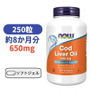 ダブルストレングス コッド リバー オイル (タラ肝油) 650mg 250粒 DHA EPA サプリメント フィッシュオイル タラ肝油【Now foods Cod Liver Oil 650mg 250 softgels】