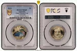 オーストラリア 2023 ジャイアント マーレー コッド $1 カラー コイン PCGS MS69 Eq トップ ポップ #8113