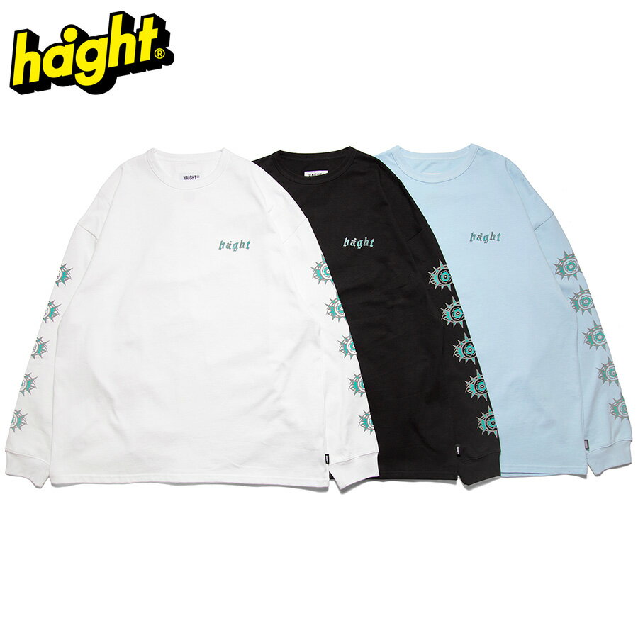 HAIGHT ヘイト GRINDLODGE グラインドロッヂ コラボ ロンT ALL SEEING EYE LS Tee ロングスリーブ Tシャツ メンズ レディース 長袖 コットン ストリート ホワイト ブラック ライトブルー 袖プリント 大きい サイズ オーバーサイズ プレゼント ギフト HTGL-251001