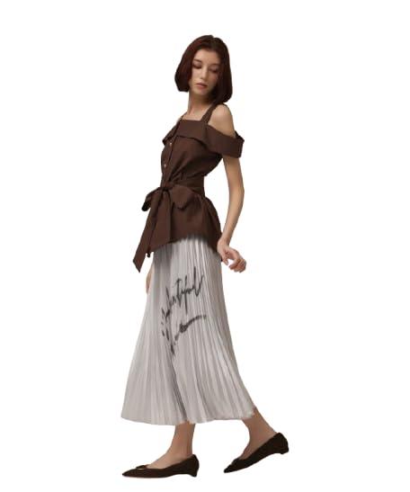 [グレースコンチネンタル] スカート 25AWコラボロングプリ-ツスカートスカート丈87cm/ウエスト64cm(ゴム上がり) ヨシダエリ氏とのコラボ。 シルバー箔にブラックロゴで表現したプリーツスカート。