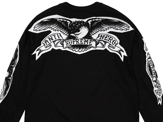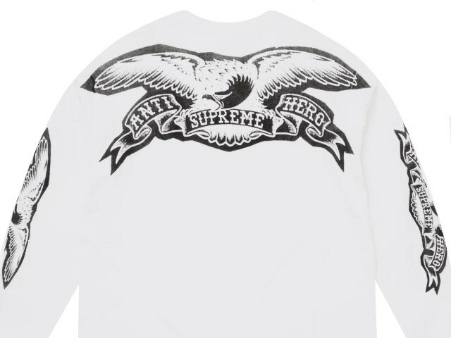 SUPREME(シュプリーム) 2025AW/Supreme x ANTIHERO Eagle L/S Tee シュプリーム x アンタイヒーロー イーグル エルエス Tシャツ (ロンT) アンタイヒーローとシュプリームのイーグルのグラフィックコラボロゴが両袖と背中に入ったロングスリーブTシャツです。 Lサイズ/着丈約77cm身幅58cm裄丈91cm XLサイズ/着丈約80cm身幅64cm裄丈95cm 素材コットン100% 新品未使用正規品