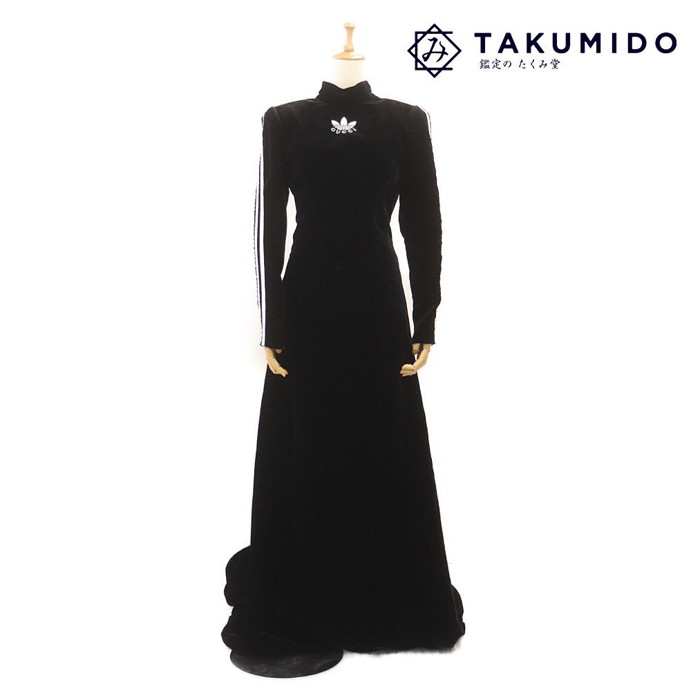 グッチ アディダスコラボ ロングドレス レディース サイズ40 中古 ブラック ベロア GUCCI 【中古】 | 黒 トレフォイル ファッション ブランド アパレル 服 長袖 Aランク
