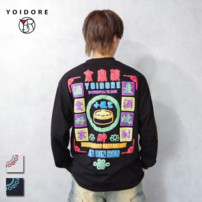 YOIDORE (ヨイドレ) ジンディンロウ コラボ ロンTEE (835202) メンズ レディース ユニセックス トップス 長袖 ロンT 刺繍 発泡プリント コラボ 大人気 おしゃれ ややゆったり