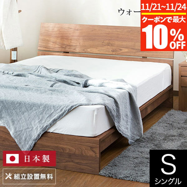 【11/21~11/24は最大10%OFFクーポン】ベッド シングル 木製 無垢材 組立設置無料 国産 コルツ ウォールナット すのこ ウォルナット オイル塗装 日本製 一人暮らし シンプル ベット 高品質 おしゃれ 新生活 フレーム マットレス別売り 送料無料