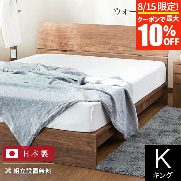 【11/21~11/24は最大10%OFFクーポン】ベッド キング 木製 無垢材 組立設置無料 国産 コルツ ウォールナット すのこ ウォルナット オイル塗装 日本製 ゆったり 大きい シンプル ベット 高品質 おしゃれ 新生活 フレーム マットレス別売り 送料無料
