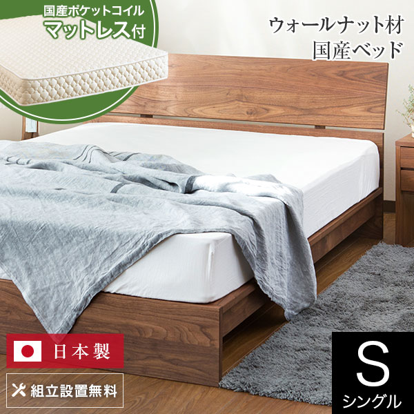 【11/21~11/24は最大10%OFFクーポン】ベッド シングル 木製 無垢材 国産ポケットコイルマットレス付 組立設置無料 国産 コルツ ウォールナット すのこ ウォルナット オイル塗装 日本製 一人暮らし シンプル ベット 高品質 おしゃれ 新生活 送料無料
