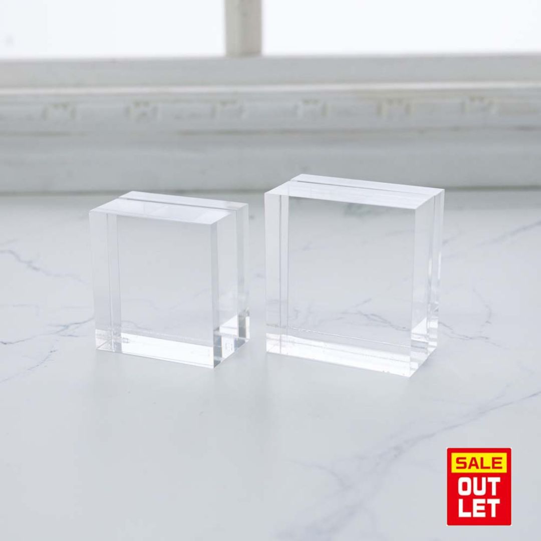 \お得なアウトレット/ 通常価格 1個1,020円のところ アウトレット価格は 2個で1,200円!! ・擦りキズ ・内側の汚れ ・気泡、溶剤痕 などの理由で検品時に除外された製品です。 --------- ・ウエハースのお菓子のおまけシール ・菓子パンのおまけシール などにぴったりのアクリルブロック ・紫外線による劣化・変退色を軽減します < 55×55mm以内シール用 >横55mm×縦60mm 厚さ31mm < 素材 > アクリル ・詳しいお手入れ方法はこちら ・通常販売商品はこちら