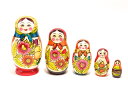 セミョーノフ工場 首席絵付師 デザイン:タマラ・コロリエヴァ(2013-2016) 、絵付:助手 ターニャ「メリノヴォ様式 マトリョーシカ5個組」 [ロシア製]