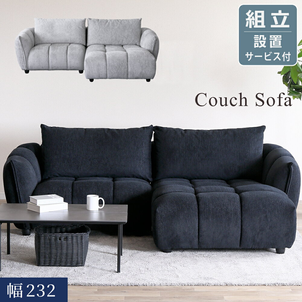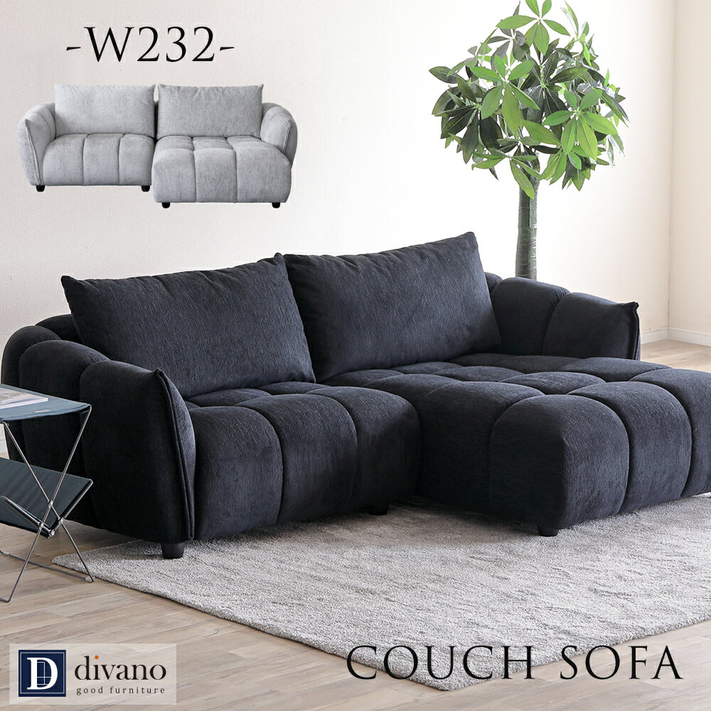 [10%offクーポン商品限定11/18~27] カウチソファ 3人掛け カウチソファー 3P sofa ファブリック ブラック グレー コーナーカウチ モダン お洒落 モコモコ ローバック 黒いソファー おしゃれ 幅230cm 大型 ワイド クッション付き 肘付き 広い 丸み 可愛い 高級感 SOFA