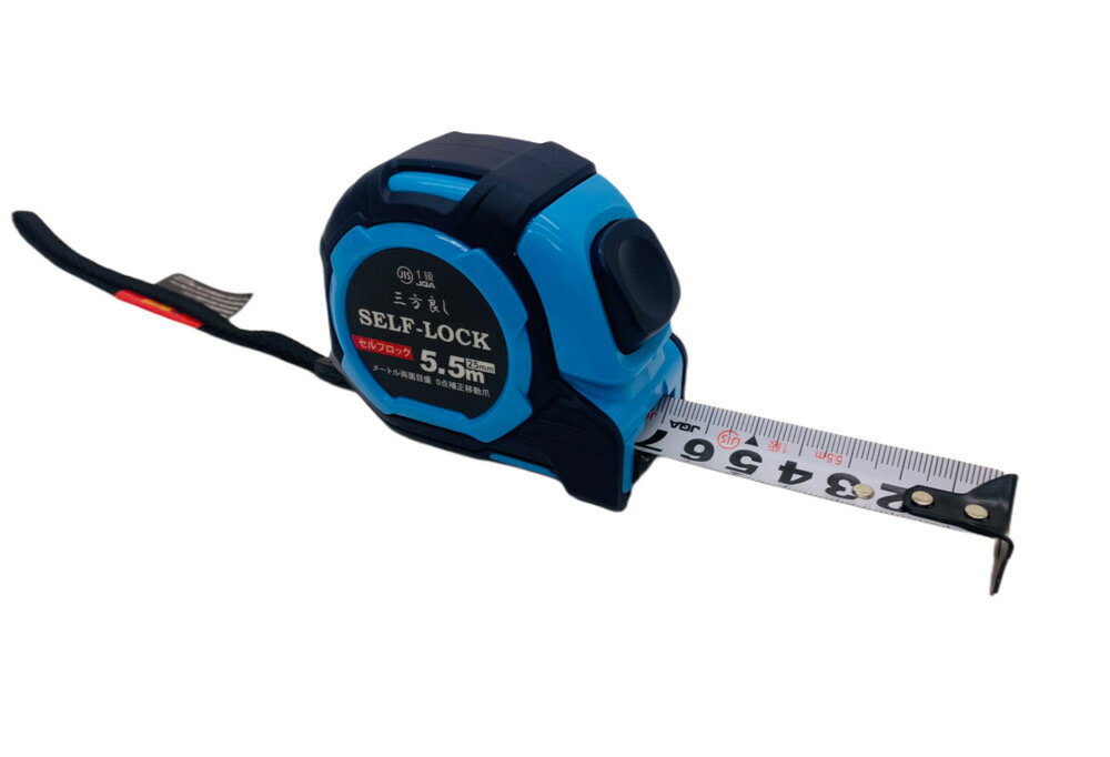 三方良し ブルー セルフロック メジャー 25mm 幅5.5m コンベックス セルフストップ 両面目盛 JIS1級規格 0点補正移動爪付 メジャー セルフロック 巻尺 コンベックス 工事 作業用品 測定用品 DIY 園芸 あす楽対応