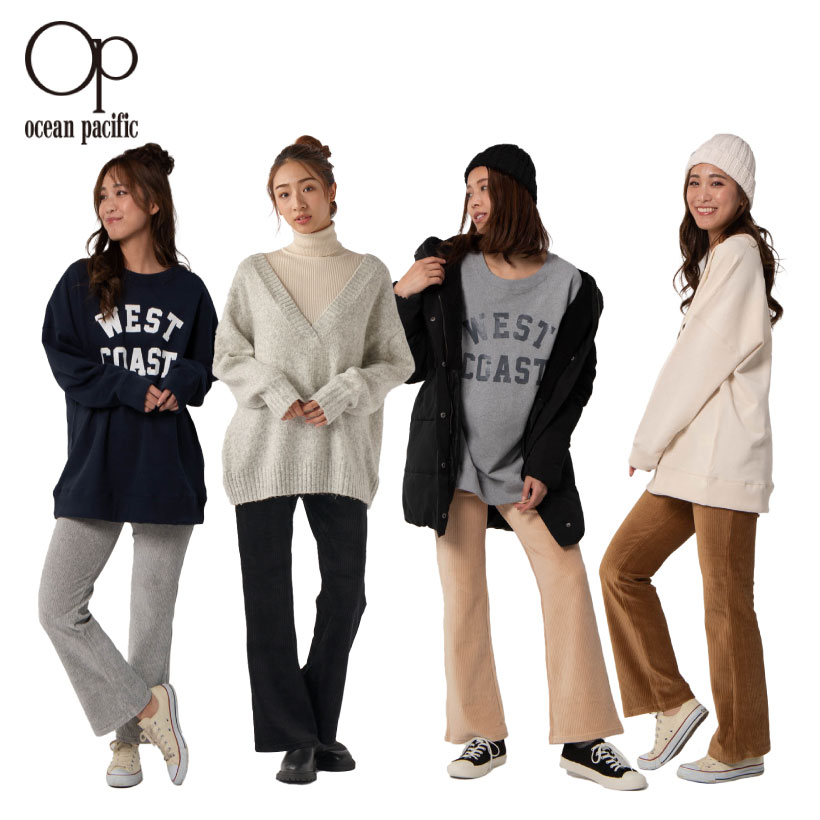 レディース コーデュロイフレアパンツ ロングパンツ ウエストゴム ポケット ブーツカット カジュアルウェア ルームウェア ボトムス ネイビー ベージュ OP オーシャンパシフィック 550708 M L XL 秋 冬
