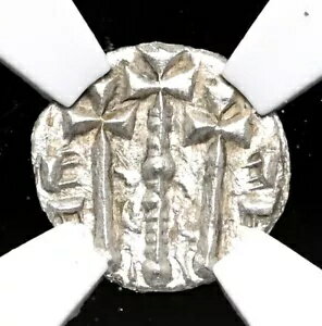 ハンガリー。スティーヴン 2 世、1116 〜 1131 年、銀ディナール、ゴルゴタの 3 つの十字架、NGC クリップ