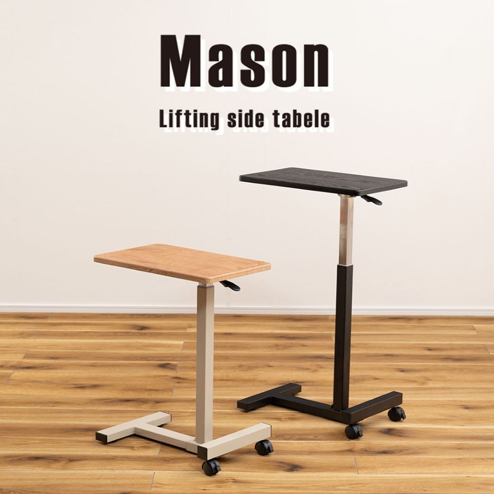 昇降サイドテーブル キャスター付き ストッパー付き 高さ調整可 東谷 END-404 リフティング スタンディング デスク 木目柄 PVC ソファ ベッド
