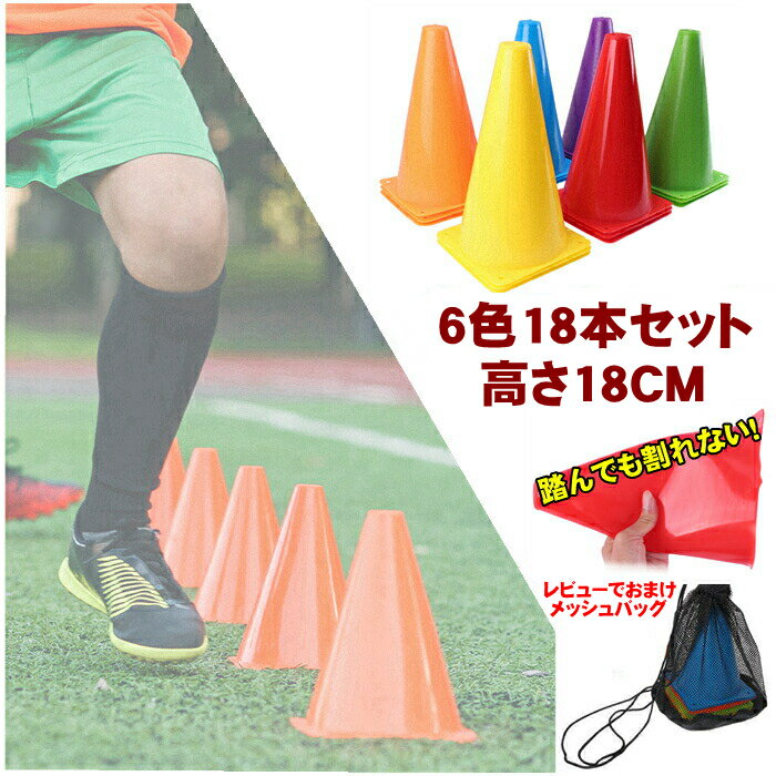 サッカー マーカーコーン 三角コーン 18cm 18本セット 部活動 練習 アジリティ スピード ラダート 卒業 陸上 競技 卒団記念 野球 トーレニング 収納袋付