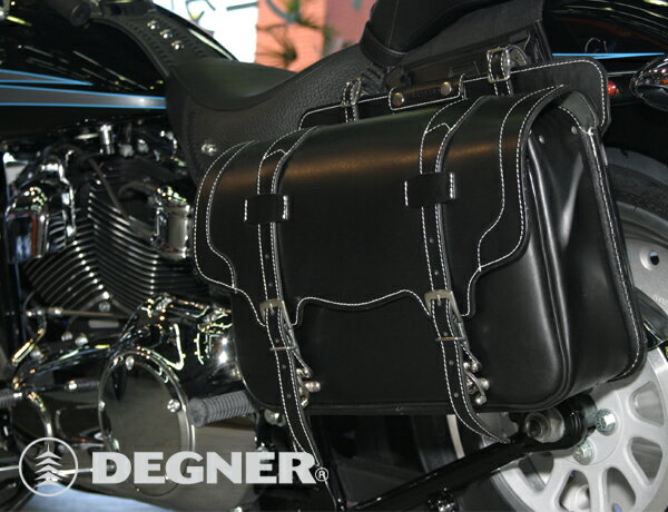【送料無料!】正規品 [DEGNER LEATHER SADDLEBAG /SB-22-BK] デグナー 本革 レザーサドルバッグ! ブラック! スタイリッシュなレザー製品をメインにプロデュースする京都革工房【DEGNER】正規代理店! 【特別価格! DEGNER LEATHER SADDLEBAG /SB-22-BK】 シンプルなデザインに惹き込まれる。飾らないカッコよさを体現したデグナーのレザーサドルバッグ。☆☆シェイプされレトロ調にデザインされた☆☆本製品は、ラージサイズながら縦方向をシェイプし、バッグの下がこすれないように開発されたレザーサドルバッグ。(※取り付けの際は、干渉が無いか確認して下さい。)□■□デグナーサドルバックが長年愛される理由(わけ)□■□●デグナーでは革質とデザインにこだわります。●荷物を入れるだけがバッグの機能ではないからです。●それを装着することで、何倍にも愛車の魅力を引き立てる為のカスタムパーツ。それがデグナーのサドルバッグです。【商品仕様】■型番:SB-22■素材:牛革■サイズ:縦30×横44×幅14(cm)■容量:17L■付属品:レインカバー×1、車体取り付けベルト×2【カラー】ブラック※商品の仕様やデザインはメーカー都合により予告なく変更になる場合がございます。 メーカーに「在庫がある商品」では通常、お届けまでに「1〜2週間前後」のお時間を頂いております。メーカーに「在庫がない商品」に関しましては、お届けまでに「1ヶ月以上」、またはタイミングにより「売り切れ」や「生産終了」となっている場合がございますので、何卒ご理解下さいますようお願い致します。また、商品によっては説明不足な点や、システムのタイムラグによって納期や入荷状況が表示内容とは異なっている場合がございますので、お届けまでのお時間や商品についてのご不明な点などがございましたら、どうぞお気軽にお問い合わせ下さい!商品画像はできる限り現品を再現するように心がけておりますが、ご利用のモニターにより差異が生じますので予めご了承下さい。 1