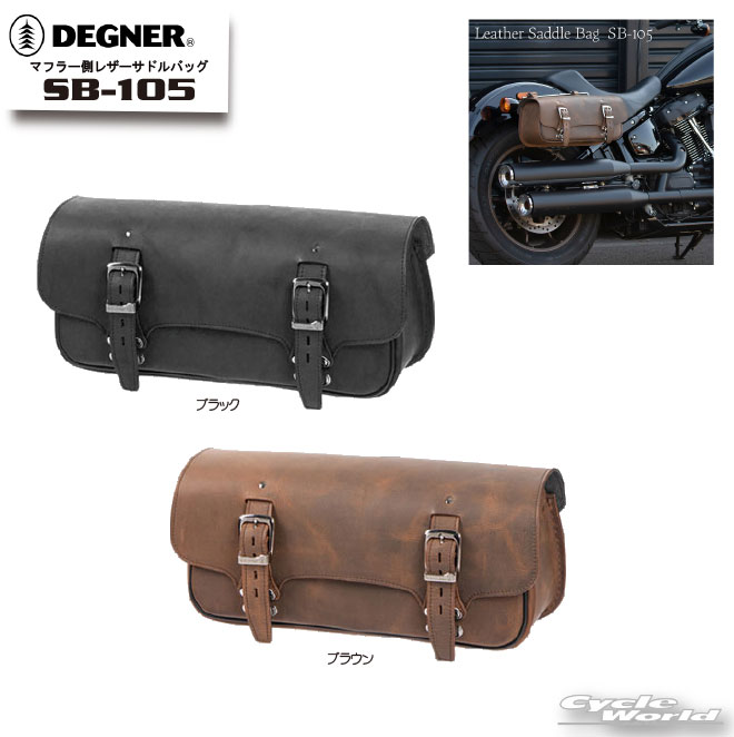 ☆【DEGNER】SB-105 マフラー側レザーサドルバッグ LEATHER SADDNBレインカバー付き サドルバッグ サイドバッグ 小さめ レザー 牛革 デグナー 【バイク用品】