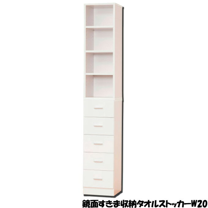 【代引不可】鏡面すきま収納タオルストッカー 幅20 キッチン収納 脱衣所の収納 ホワイト 新生活 サニタリーラック