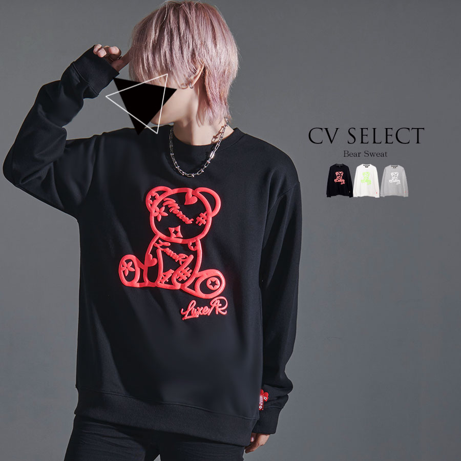 "CV Select【シーブイセレクト】 LUXE/R 発泡ベア長袖トレーナー/全3色"トレーナー メンズ スウェット 地雷系 長袖 サブカル系 V系 メンズ 黒 ブラック 白 ホワイト メンヘラ 病み ベア クマ