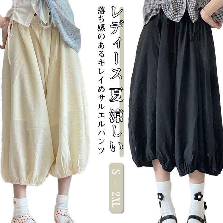 ゆるパンツ 夏 サルエルパンツ 春 パンツ 涼しい ゆったり サルエル クロップドパンツ 夏 レディース ウエストゴム 涼しい パンツ ワイドパンツ クロップド丈 バルーンパンツ おしゃれ 体型カバー ウエストゴム ボトムス ゆるパン 7分丈