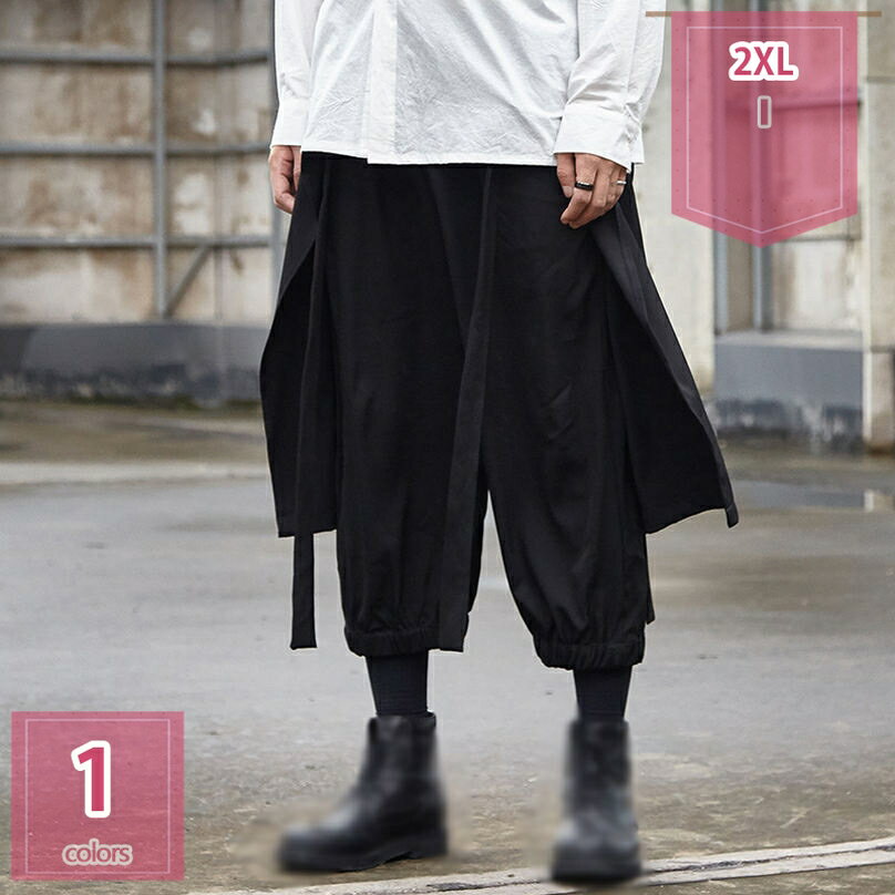 777円OFFクーポン ワイドパンツ 袴パンツ ガウチョパンツ メンズ サルエル クロップドパンツ モード系 サブカル ストリート オーバーサイズパンク ロック 原宿系 メンズ レディース ユニセックス ブラック オールシーズン holosbird-goods1