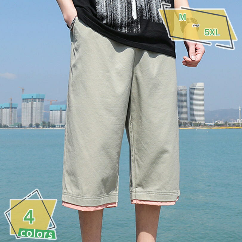 涼感 七分丈 コットンパンツ イージーパンツ ハーフパンツ メンズ 綿パンツ スリット ひざ下 無地 ルームウェア サルエル クロップドパンツ 短パン アウトドア ダンス 衣装 パンツ 大きいサイズ リラックス 部屋着 春 夏 おしゃれ RaogtCYU