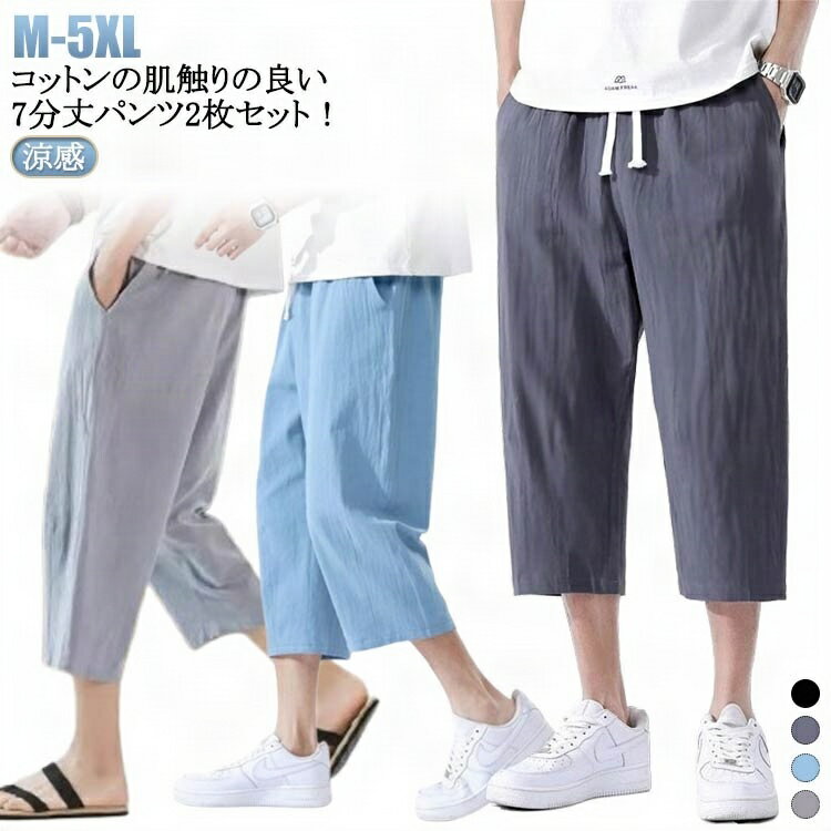 涼感 七分丈 コットンパンツ イージーパンツ ハーフパンツ メンズ 綿パンツ ひざ下 無地 ルームウェア サルエル クロップドパンツ 短パン アウトドア ダンス 衣装 パンツ 大きいサイズ リラックス 部屋着 春 夏 おしゃれ RaogtCYU