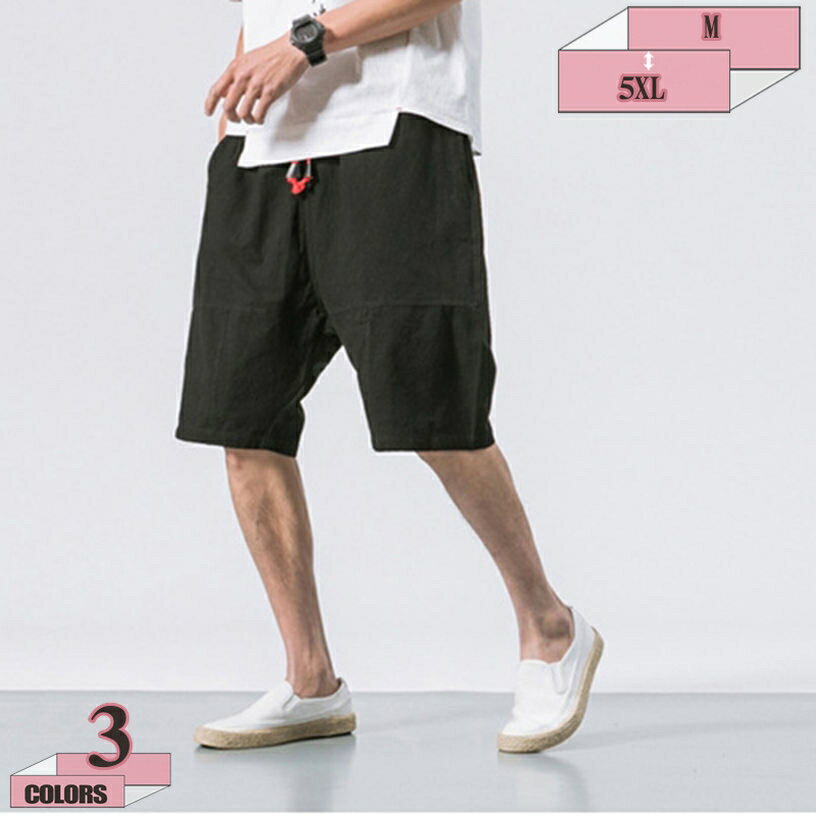 リネン ワイドパンツ メンズ 綿麻 サルエル クロップドパンツ 黒 ショートパンツ 膝下 七分丈 大きいサイズ 春 夏 リラックス 無地 ボトムス ゆったり おしゃれ カジュアル シンプル ファッション 彼氏 父の日 ギフト 贈り物 プレゼント イージーパンツ