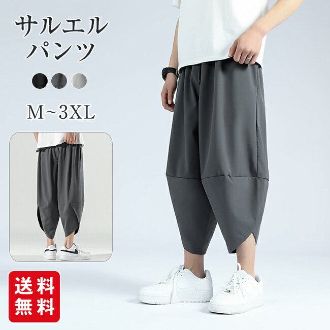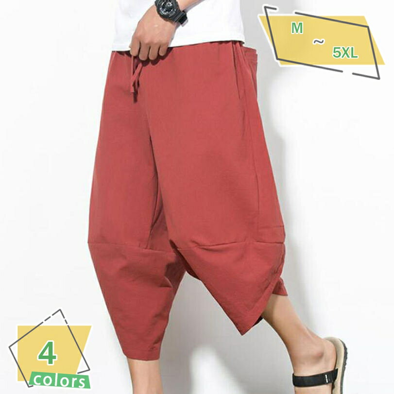 サルエルパンツ メンズ 大きいサイズ サルエル クロップドパンツ ワイドパンツ アラジンパンツ ハロンパンツ リネンパンツ 7分丈 涼感 綿 コットン リラックス パンツ ハーフパンツ ひざ下 RaogtCYU