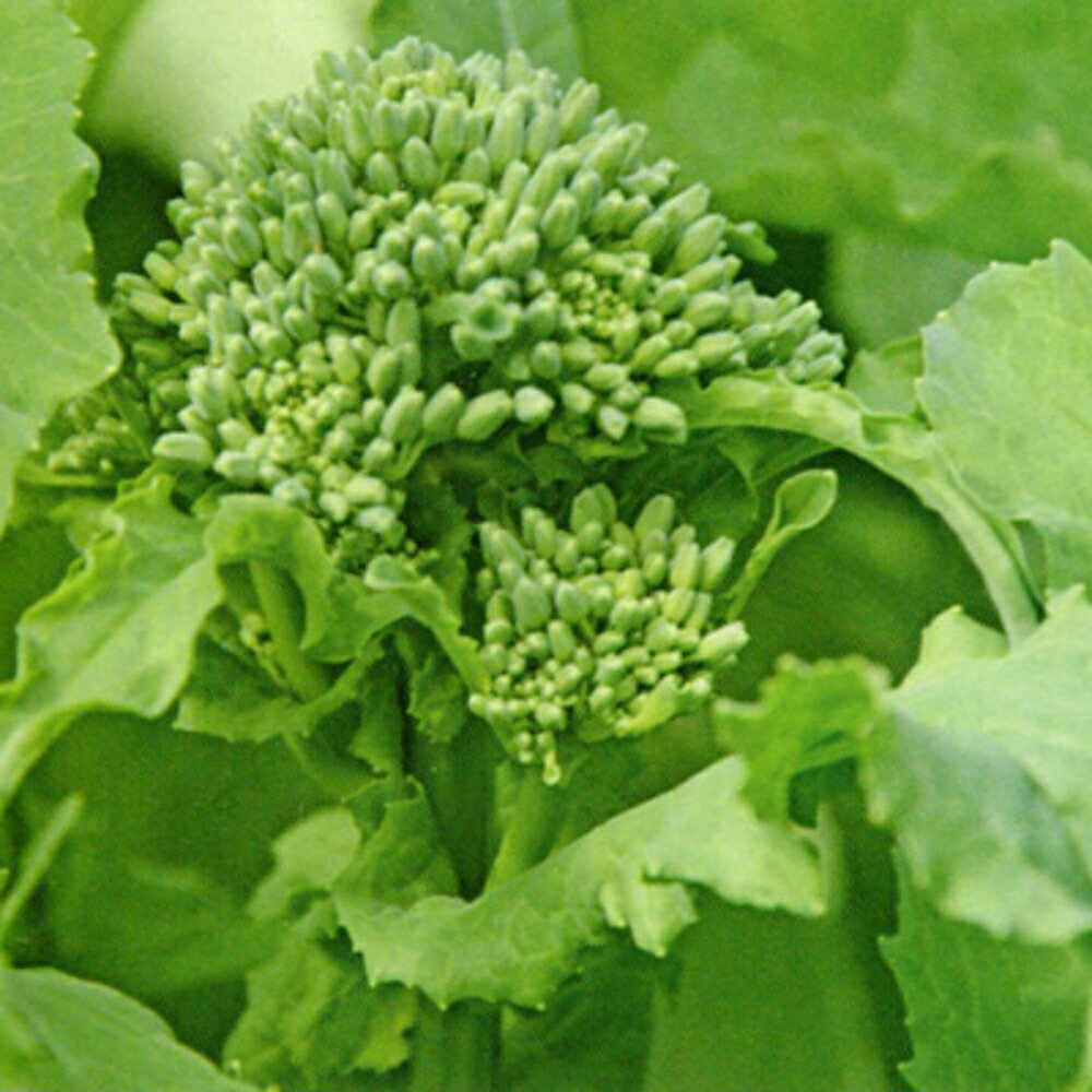 特性 花蕾が大きく、濃厚な味が特長のイタリア在来種を選抜し、食味と早生性を重視して育成した西洋ナバナ。 日本で一般的なナバナ類よりも花蕾が大きくまとまる。 抽だいが早く、栽培容易で播種後50-55日で収穫となる。 発芽適温は20-23℃。子葉展開時に生育不良株を間引き苗の生育を揃える。 夏場は雨、害虫避けのため寒冷紗被覆が望ましい。本葉5-6枚の苗を株間25cm程度に定植する。 春先は思わぬ低温に遭遇すると、抽だいが予想以上に早くなる場合があるの適宜トンネル被覆などを行う。