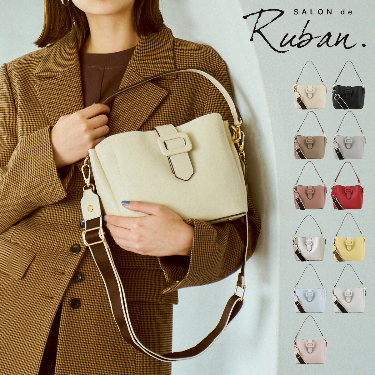 ITEM SPEC COLOR VARIATION ブランド:SALON de RUBAN サロン ド ルヴァン サイズ:約W30×H32×D15cm重量:約490gショルダー長さ:約82~95cm(取り外し不可) カラー:アイボリーブラックグレーベージュライトグレーブラウンシルバーライトグレー×ダークグレー 素材:合成皮革 仕様:マグネットボタン式開閉内側:フリーポケット×1前面:オープンポケット×1 ご注意ください: ● 商品の画像は、できるだけ商品に近いカラーにて掲載をしております。 お客様のモニターの発色または設定により、実際の色味と異なる場合もあります。あらかじめご了承ください。 ● メーカーサイズ、もしくは実際に測った寸法となります。商品の素材等の個体差により、若干サイズのばらつきがあります。サイズはあくまでも目安としてお考えください。 ● 天然皮革・素材を使用している商品によっては、天然素材の特性上、部位により風合いやシミ・シワ感や焦げ、濃淡など多少の個体差がある場合があります。あらかじめご了承ください。