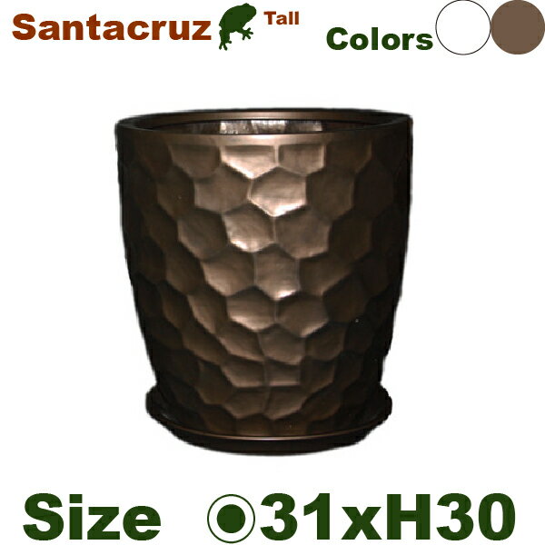 サンクタス トール S 白/ブロンズ(直径31cm×H30.5cm)(底穴あり/受皿付)(陶器製)(観葉鉢)